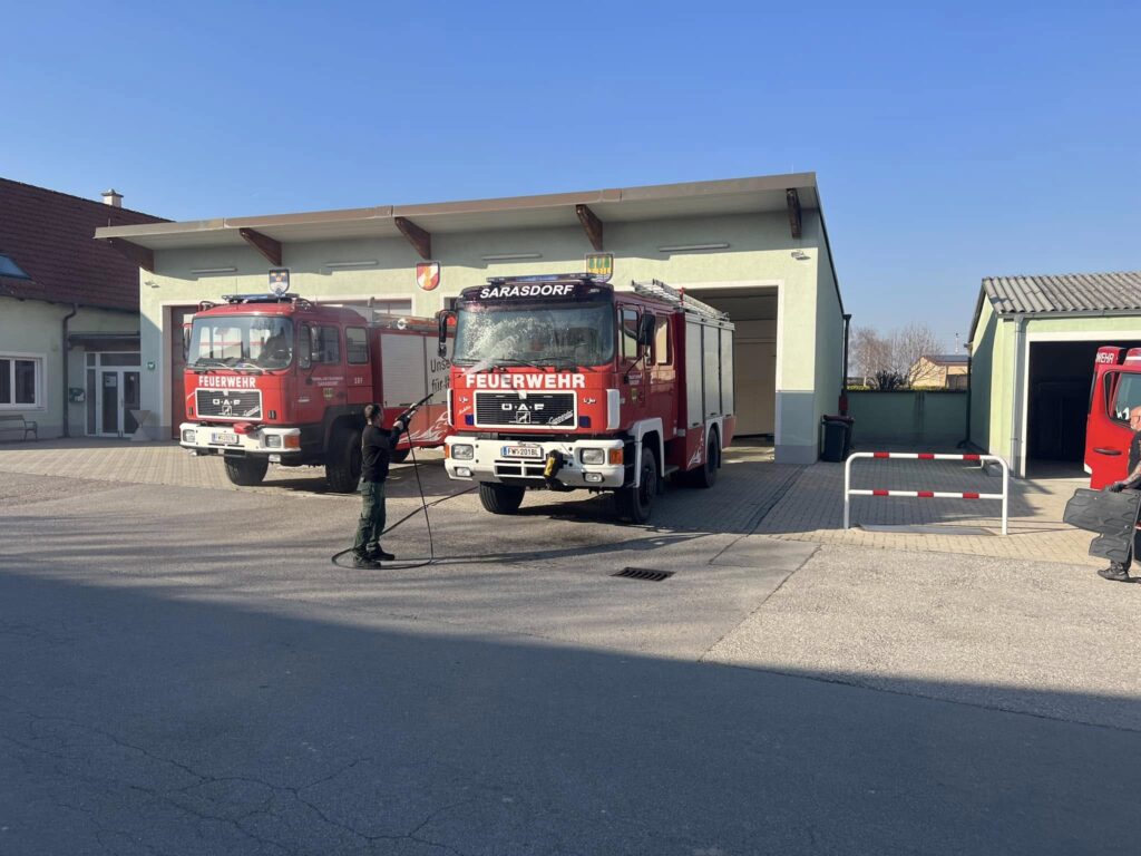 Nach dem gestrigen Brandeinsatz trafen sich einige Kameradinnen und Kameraden am heutigen Sonntag um die Fahrzeuge sowie Geräte zu reinigen.