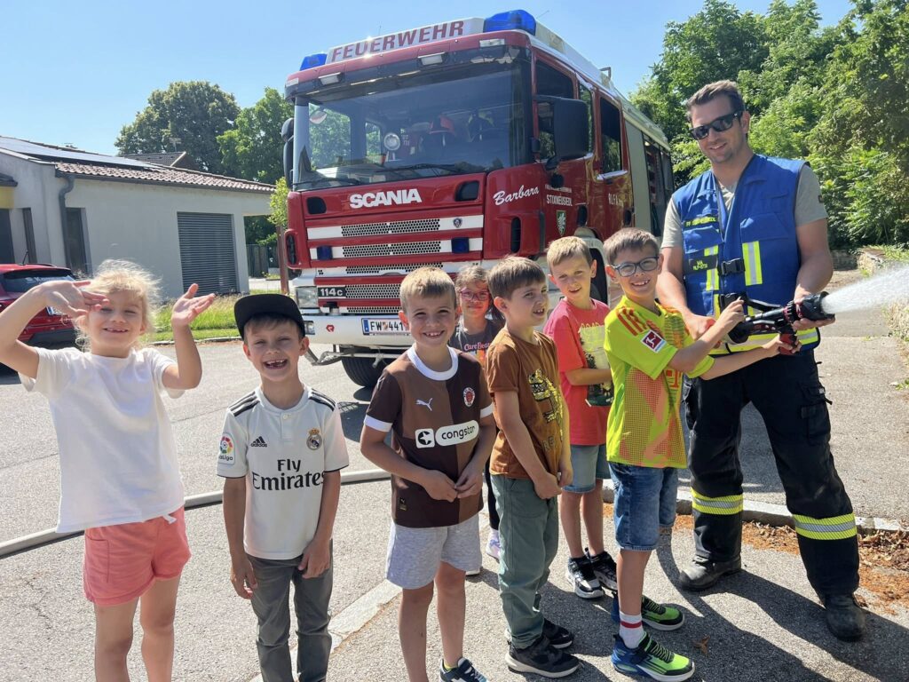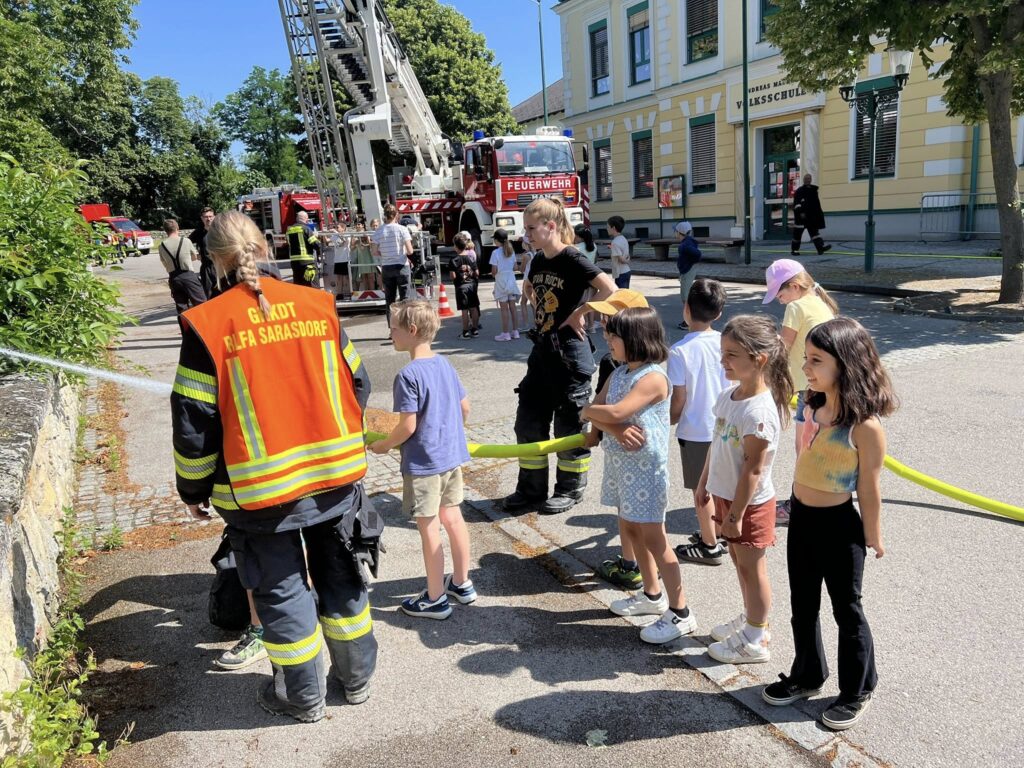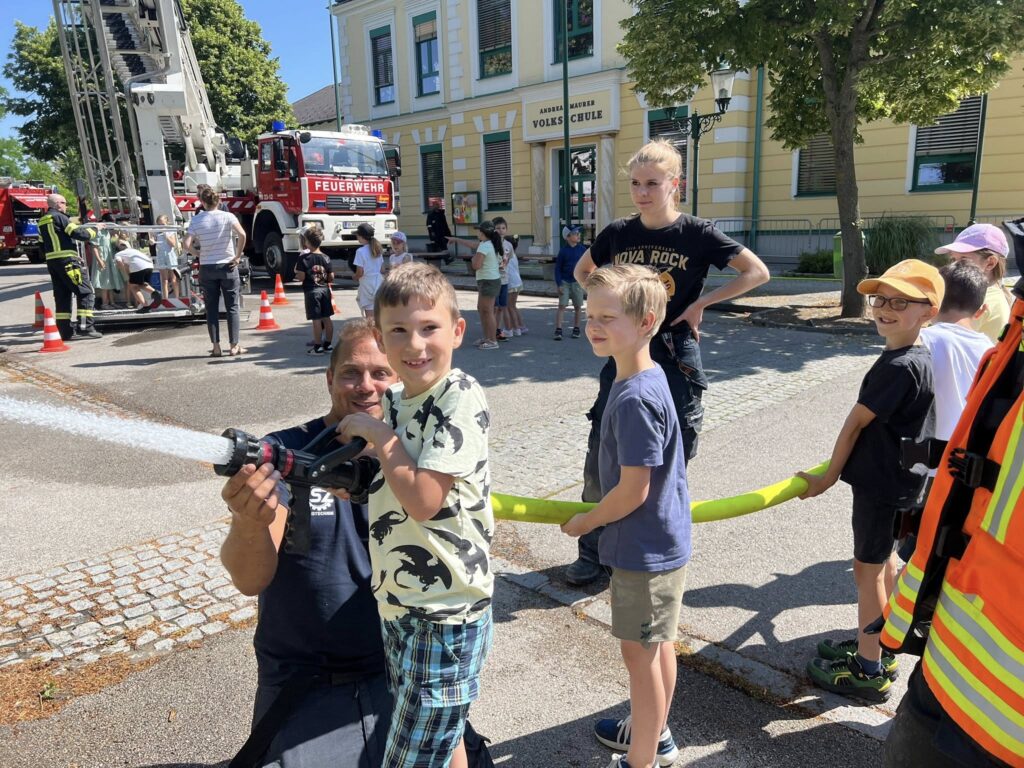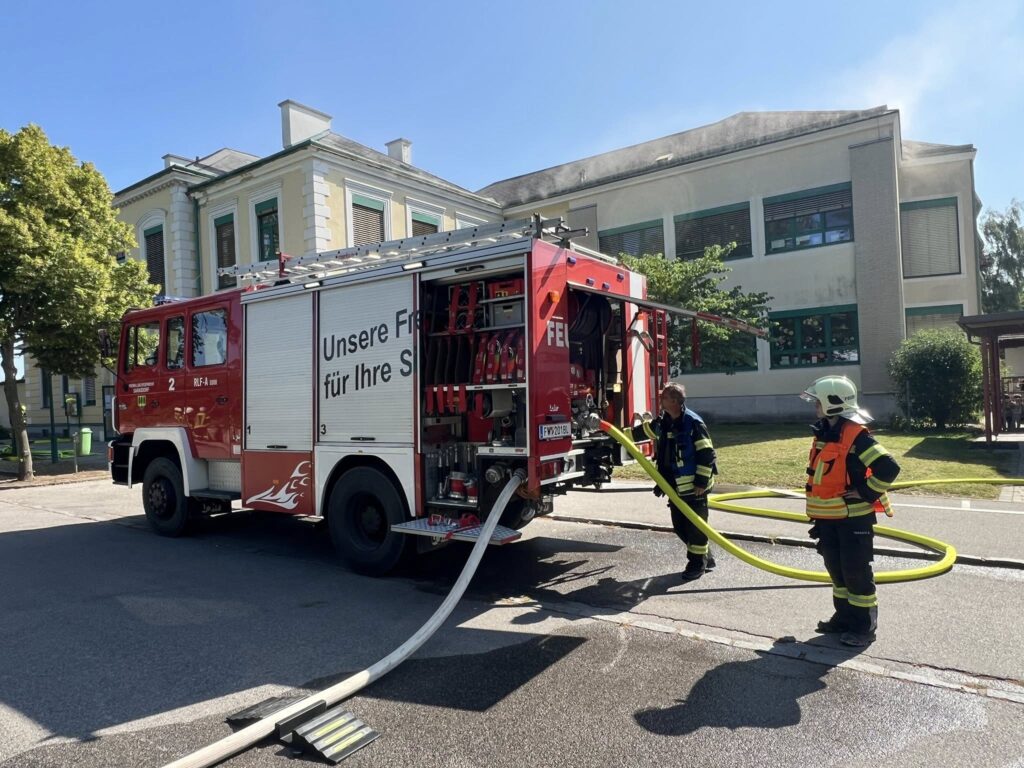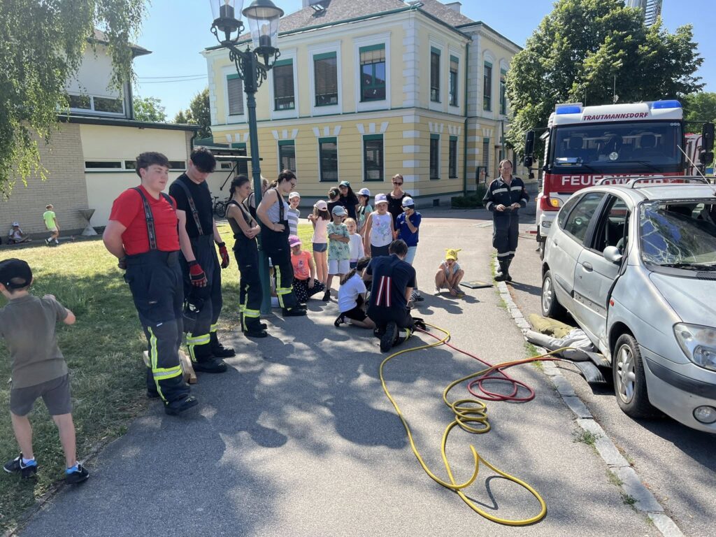 Freitag Vormittag waren wir bei unseren Nachbaren der FF Trautmannsdorf zu einer Übung eingeladen. Nach der Alarmierung zur Übung ( Brand mit vermissten Personen in der Volksschule Trautmannsdorf) rücken unsere beiden Wasserführenden Fahrzeuge RLFA3000 und TLF1000 mit Atemschutzträger zur Übung aus. Unsere Aufgabe war es den angrenzenden Kindergarten zu schützen, eine Wasserversorgung mit dem TLF für unser RLF aufzubauen und wir stellten den ersten Atemschutztrupp. Nach der erfolgreichen Übung, durften alle Kinder noch einen Stationsbetrieb der einzelnen Wehren durchmachen. Es war eine super Übung, und das schönste es gab viele viele lächelnde Kinder.