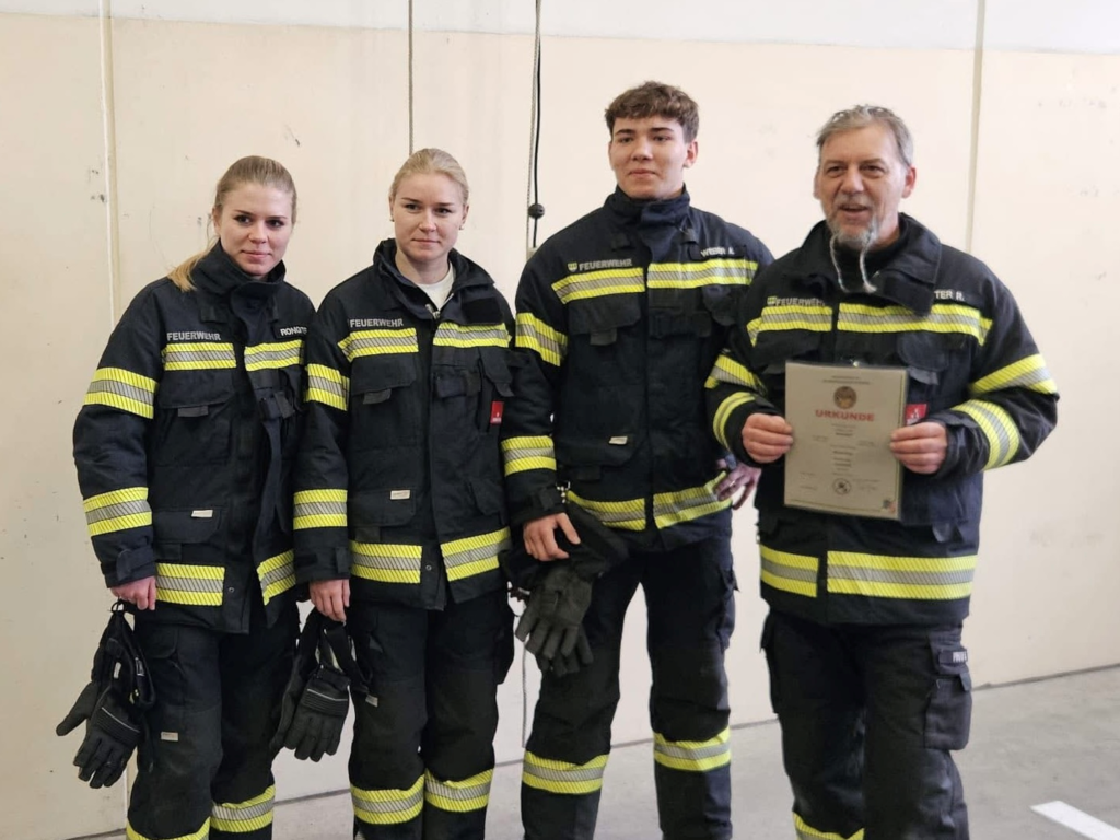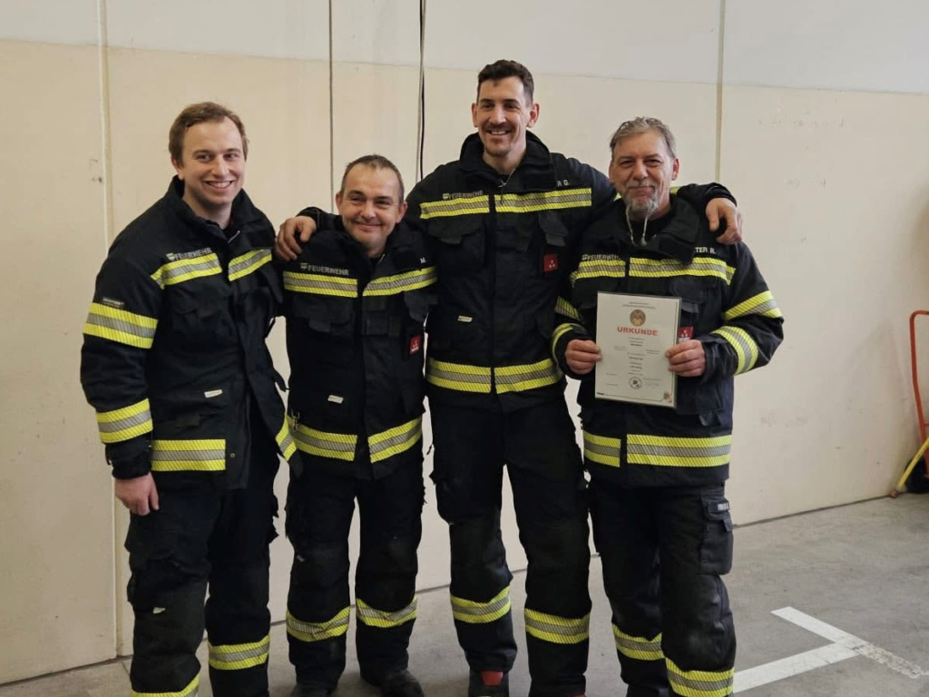Ein besonderer Höhepunkt war die feierliche Übergabe der Atemschutz-Leistungsprüfungsabzeichen. Zwei Trupps stellten sich bereits am Vormittag dieser Prüfung im Feuerwehrhaus und konnten diese erfolgreich absolvieren. Diese verdienten Abzeichen durften wir am Abend im würdigen Rahmen überreichen.