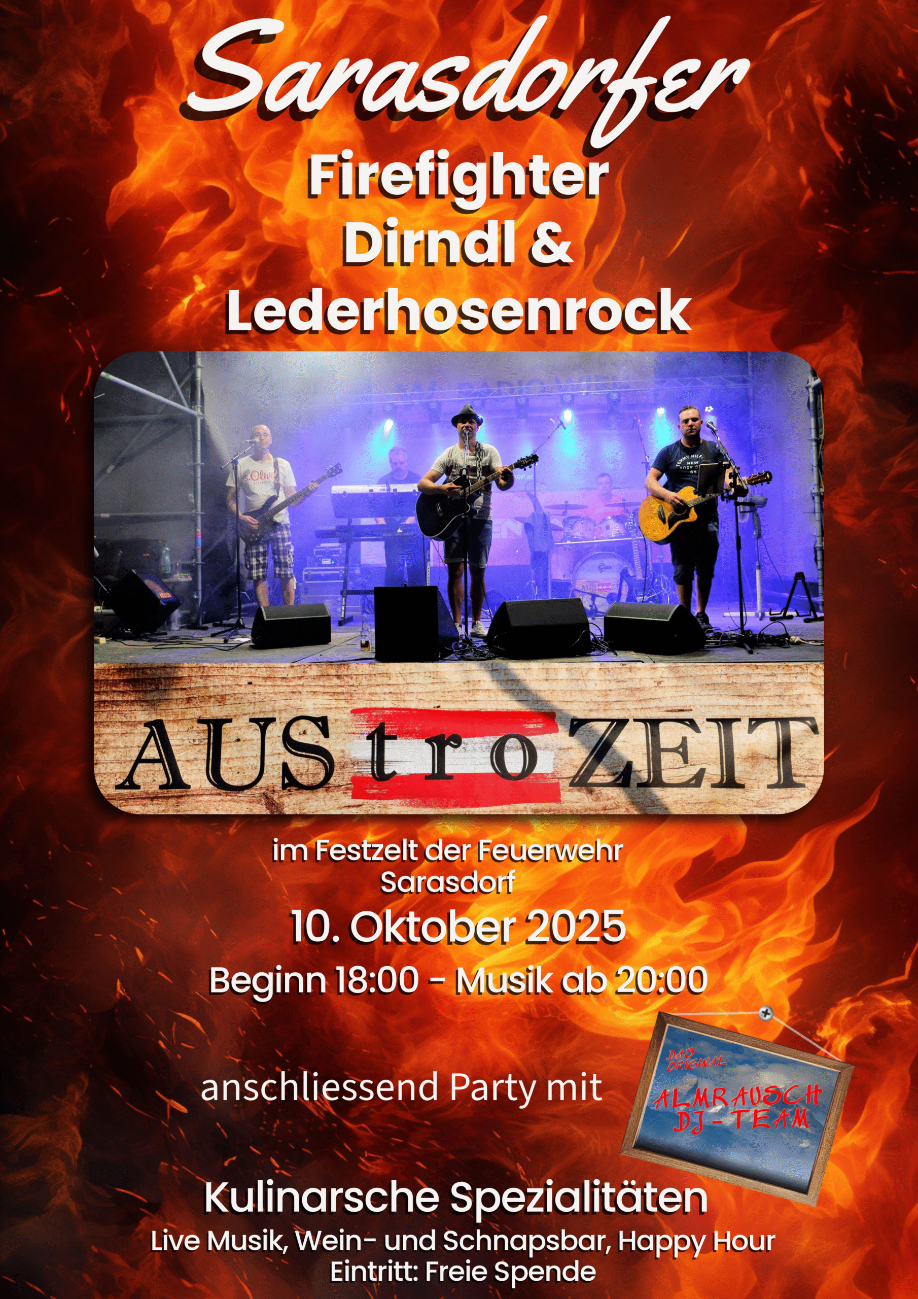 mit AUSTROZEIT im Festzelt der Feuerwehr Sarasdorf.